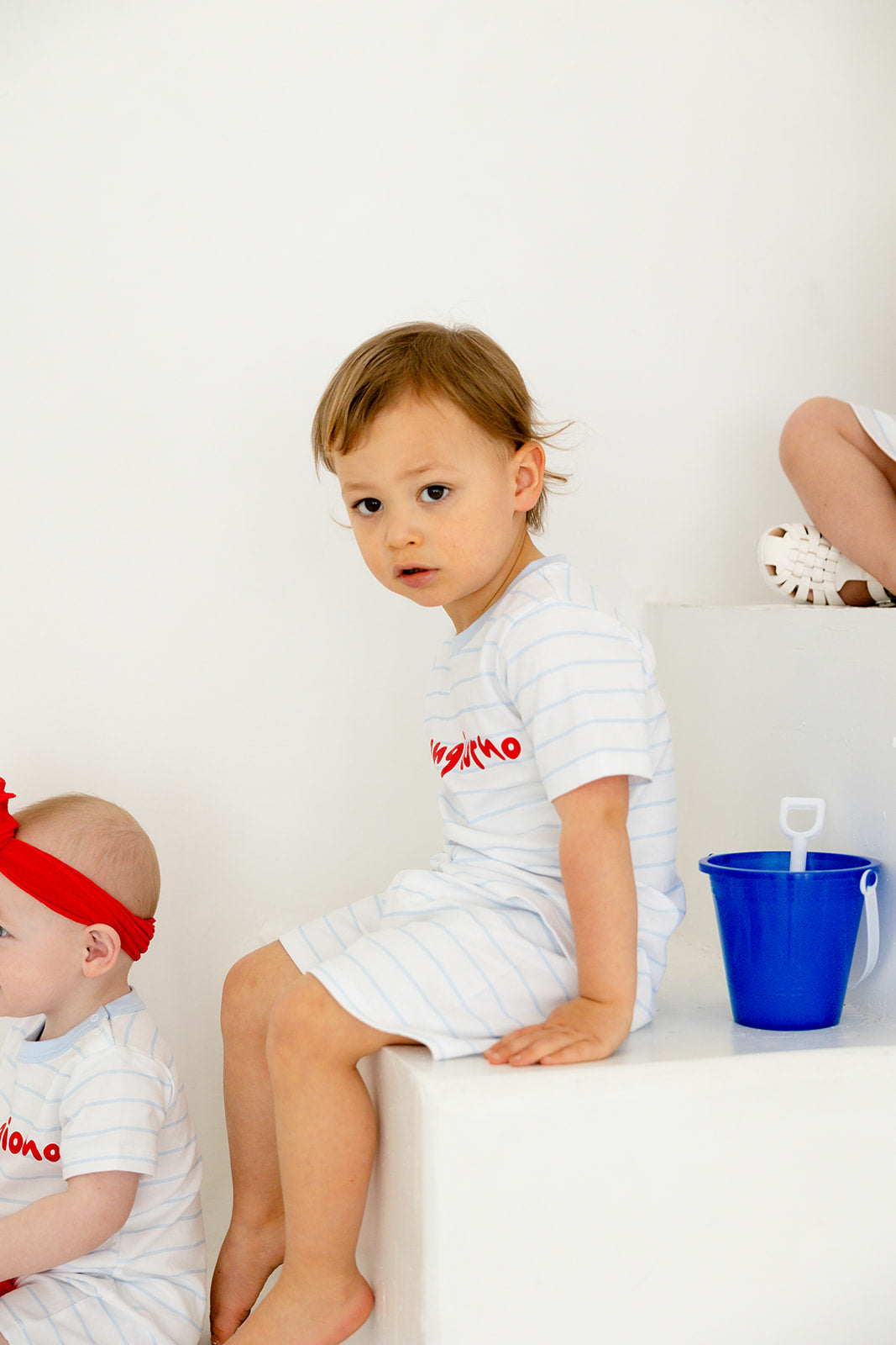 Start the day with a smile in this charming Buongiorno set! Featuring a bold red buongiorno on a soft, breathable tee and paired with classic blue and white striped shorts, this outfit is made for sunny adventures and sweet morning vibes. Crafted from ultra-soft Pima cotton, it’s comfy enough for all-day play and stylish enough for any summer outing. Bellissimo and ready to go!