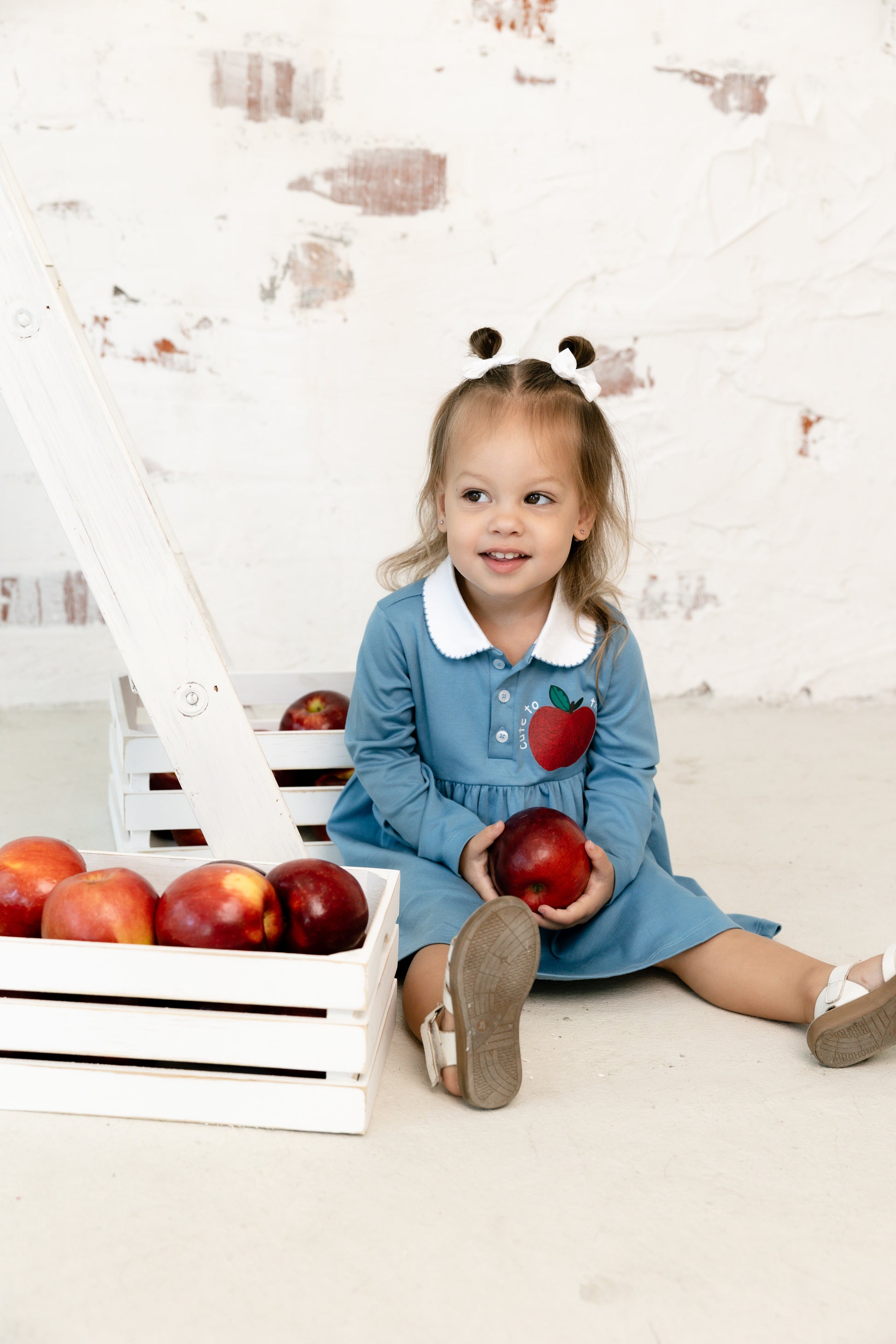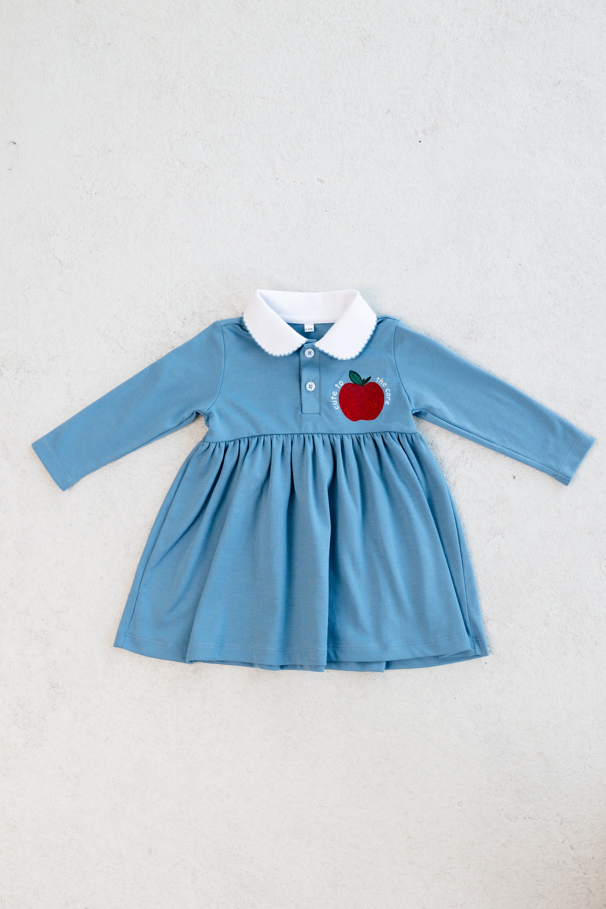 This cute to the core dress is perfect for those cooler months. It has an adorable collar with matching niagara pipping. It also has three buttons on the front and matching bloomers for babies under 2T.